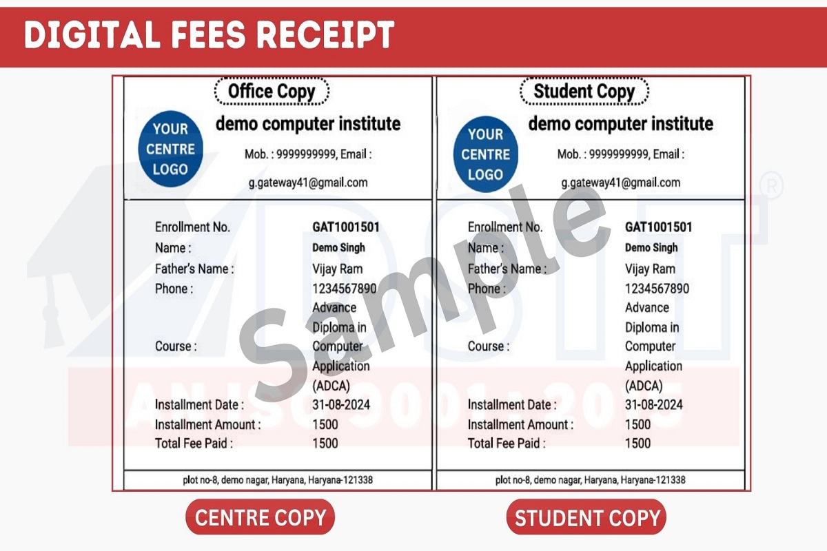 • INSTITUTE से Fee जमा कर के Receipt प्राप्त करें ।